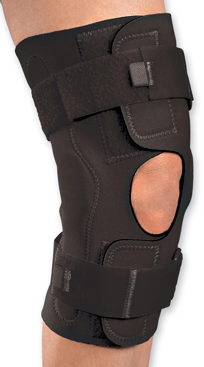 Procare reddie knee brace with hinges, medium, 18" - 20-1/2" circumference, black, posterior strap, open popliteal area