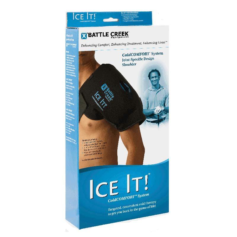 Ice it shoulder system, 13" x 16".This complete cold therapy system includes two e-pack cold packs and a fabric cover with both velcro and elastic straps.