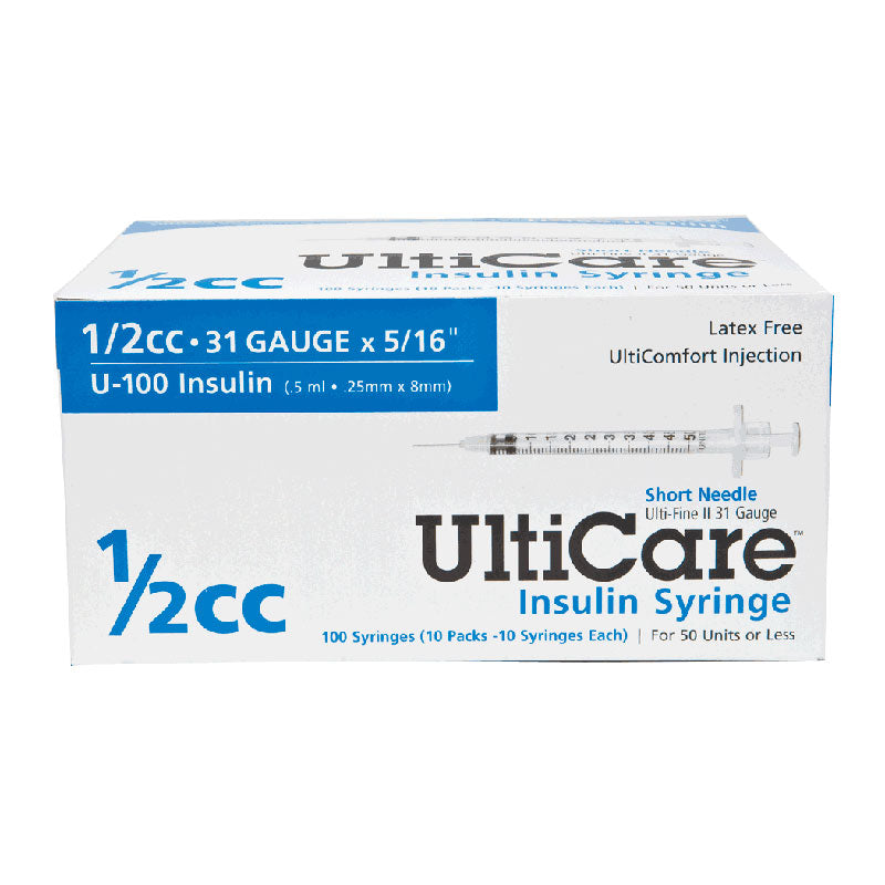 Short Needle Insulin Syringe 31g X 5/16", 1/2 Ml (100 Count)