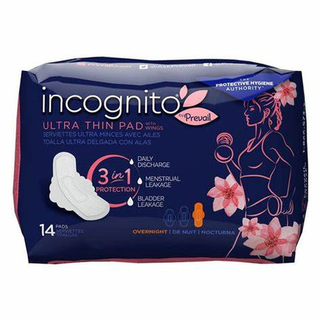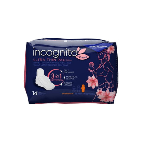 HSA/FSA Eligible$1.95Unit price /UnavailableIncognito By Prevail, 3-in-1 Feminine Pad, Overnight Ultra Thin Pad