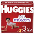Huggies little movers diapers, size 3, 16-28 lbs.(7-13 kg), 25 count jumbo pack.