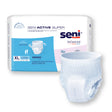 Seni active super x-large disposable underwear is a perfect solution for people leading an active life or participating in physical rehabilitation.They are ideal for moderate to heavy incontinence.Worn like normal underwear for discretion and exceptional comfort.; perfect for active people and during bladder training.; fully breathable outer layer allows humidity to evaporate to promote a skin-friendly microclimate.; absorbent core provides high absorbency and the feeling of dryness.; superabsorbent locks in moisture to prevent skin irritation.Locking urine inside the core also reduces bacterial growth and helps contain odor.; hydrophobic standing side gathers for better protection.; elastic leg cuffs ensure perfect fit.; extra dry system (eds) non-woven layer for quick and effective absorption.; soft, delicate materials and perfect finish for maximum comfort.; not made with natural rubber latex.; tear-away side seams make removal simple and easy.; waist/hip size x-large 47"-63"