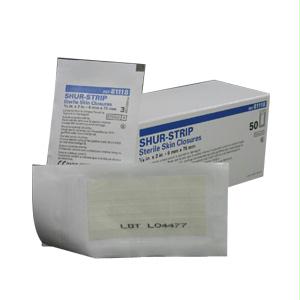 Shur strips wound closure strips 1/4" x 3", sterile, 3/envelope, made of a porous, nonwoven backing coated with a pressure-sensitive, hypoallergenic adhesive.