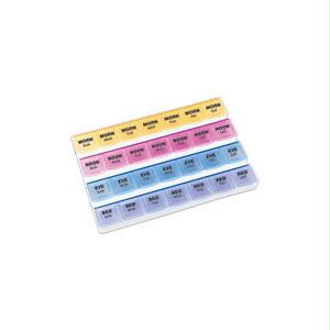 7-day mediplanner 8-5/16" w x 5-5/8" h x 1-1/2" d, 28 color coded compartments.Retail packaging.