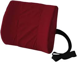 Alex orthopedic standard lumbar cushion with navy cover and strap, 15" x 13.5" x 5".