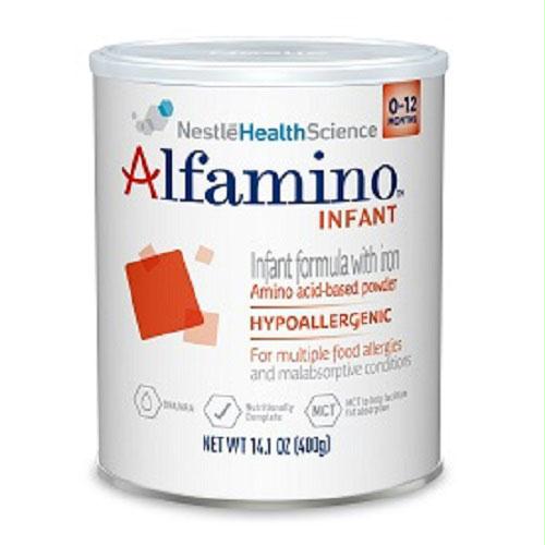 Alfamino infant unflavored powder 14.1 oz (400 g), 1,976 calories per can.Appropriate for cow's milk protein allergy, multiple food allergies, and conditions of severe maldigestion and malabsorption.Complete source of nutrition gluten-free, lactose-free and easy to digest.