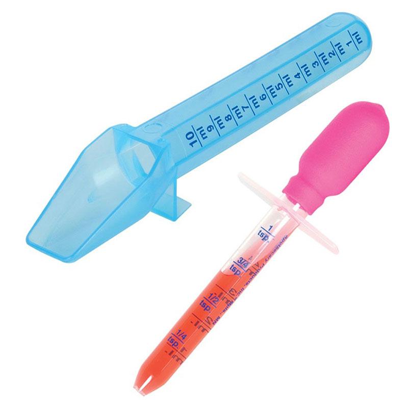Apothecary products medicine spoon & spoon dropper value pack.Includes a 2 tsp (10 ml) capacity medicine spoon and a 1 tsp (5 ml) capacity spoon dropper, calibrated in teaspoon and 1 milliliter increments.