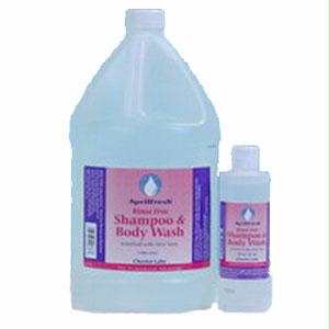 Aprilfresh rinse free shampoo & body wash with aloe vera 8-oz.Bottle with flip-top cap, contains no alcohol, easy-to-use flip-cap