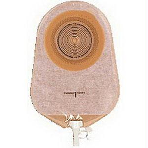 Assura one-piece non-convex standard wear urostomy pouch with anti-reflux valve and closure, cut-to-fit, anatomical design 3/8" - 2-1/4" stoma opening, 10-3/4" l, 465ml, opaque, soft backing