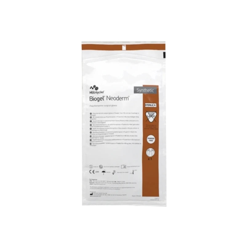 Biogel neoderm sterile synthetic polychloroprene surgical glove, single, size 8.0, powder-free, beaded cuff.Unique biogel coating on the inner surface makes gloves easy to don even with damp hands.Manufactured without the chemicals commonly known as accelerators.