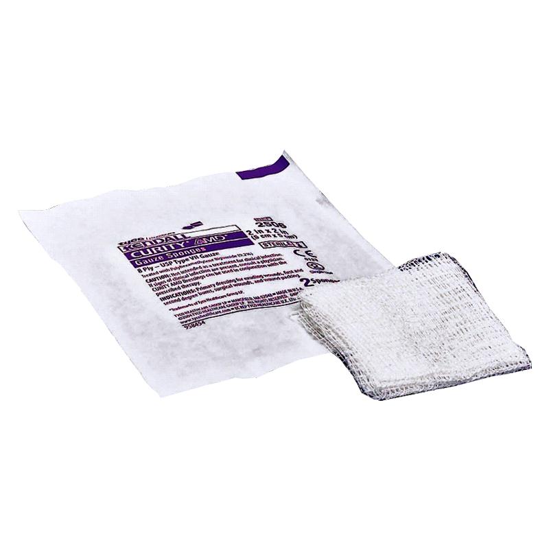 Curity amd antimicrobial gauze sponge 2" l x 2" w square shape 8 ply sterile, 2s in tray, non-adhesive