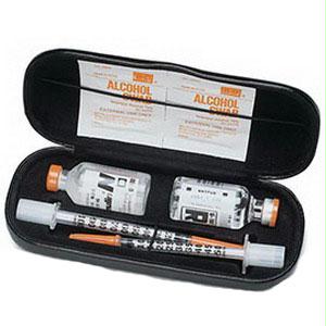 Discreet yet stylish.Handy carrying case available for transporting insulin and syringes.Simulates a designer eyeglass case.Made of lightweight aluminum with a fitted insert that holds two vials of insulin, two syringes and alcohol swabs.Alsoc