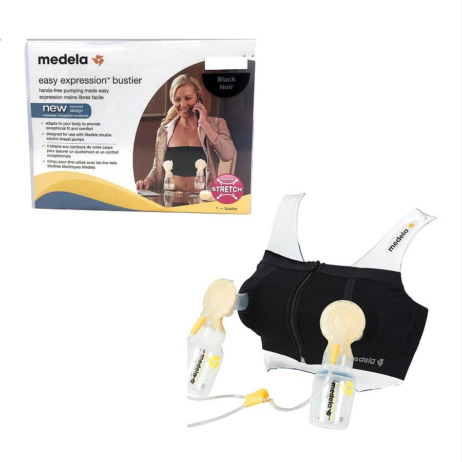 Medela easy expression bustier, small, black.New and improved easy expression hands-free pumping bustier - now featuring adaptive stretch! medela's patented adaptive stretch technology allows the bustier to adapt to mom's body to provide exceptional fit and comfort throughout the pumping journey.Can be worn alone or over a nursing bra or camisole.Easy care nylon, spandex blend fabric is machine washable.Tip: use medela quick clean breastmilk removal soap for safe, effective cleaning of pumping and nursing apparel.