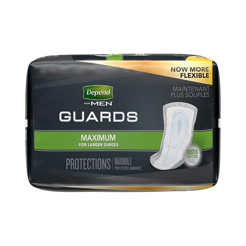 Men's depend guard, adhesive strips, maximum absorbency, 12" long