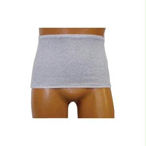 Men's wrap/brief with open crotch and built-in ostomy barrier/support.Center stoma, medium.Ideal for active day, exercise, intimacy, sleep and perfect under swimwear.For higher stoma locations adjust the garment on your torso.The wrap/brief is a rib-knit that is 100% cotton - soft, comfortable and wicks/absorbs moisture.The barrier/support is also 100% cotton baby jersey that wicks/absorbs moisture.Light gray.