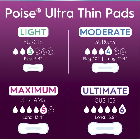Poise Ultra Thin Incontinence Pads, Moderate Absorbency, 60 Count, ...