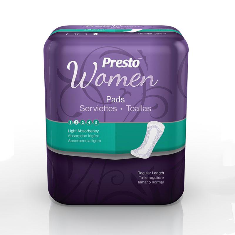 Presto pads, light absorbency, 8.5" regular.