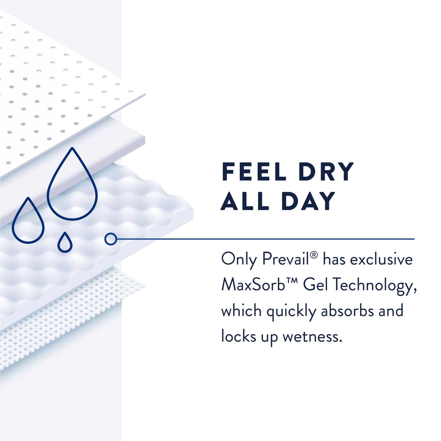 Prevail® Pantliners stay securely in place and offer extra absorbency for light to moderate bladder leakage. Features include: MaxSorb™ Gel Technology to quickly lock up moisture to help keep you feeling cleaner, fresher and drier; Omni-Odor Guard™, a dua