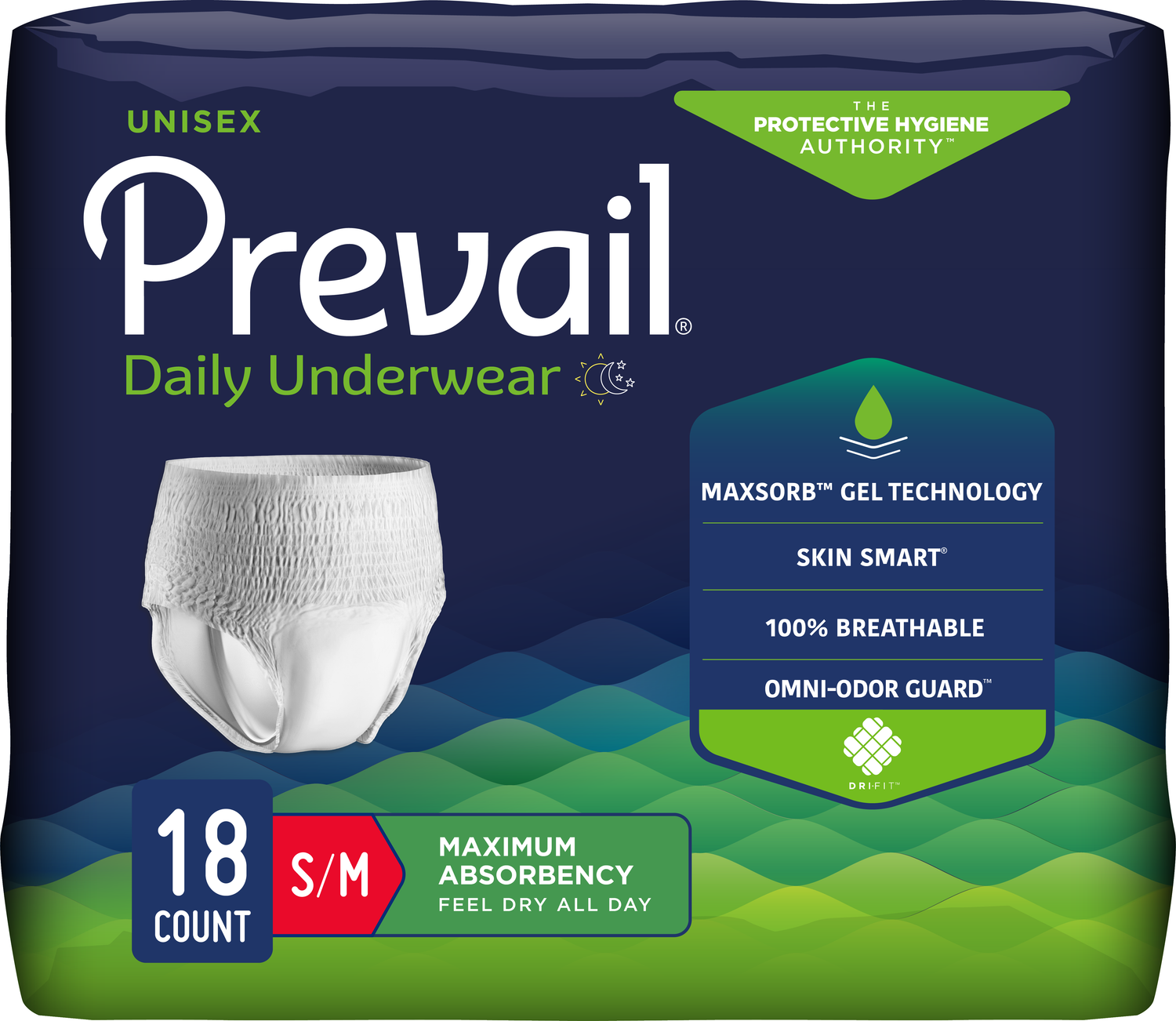 Every Prevail® protective undergarment is designed with four things in mind: comfort, absorbency, skin health, and discretion. Prevail® Maximum Absorbency Unisex Underwear is designed for both men and women who need moderate to heavy leakage protection.