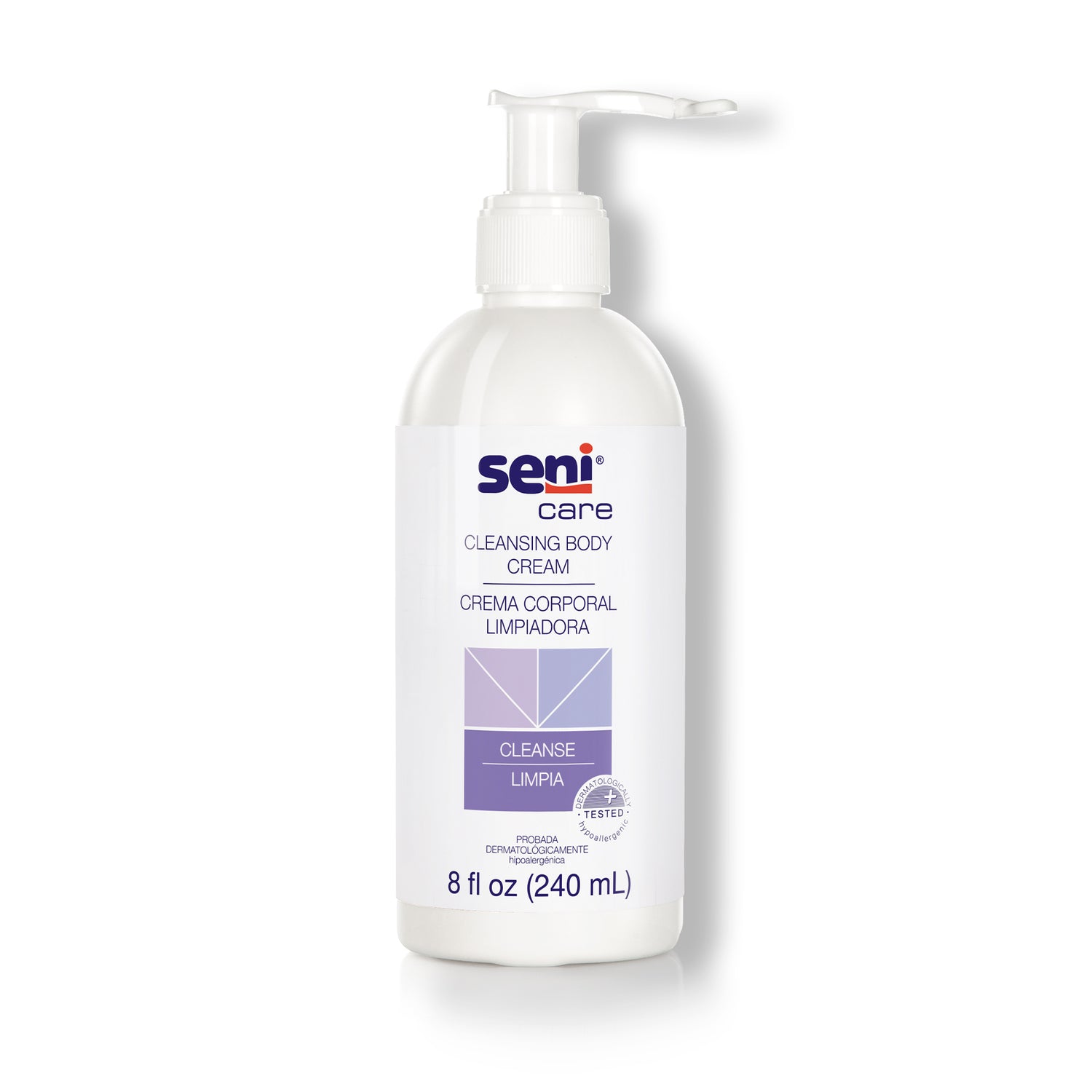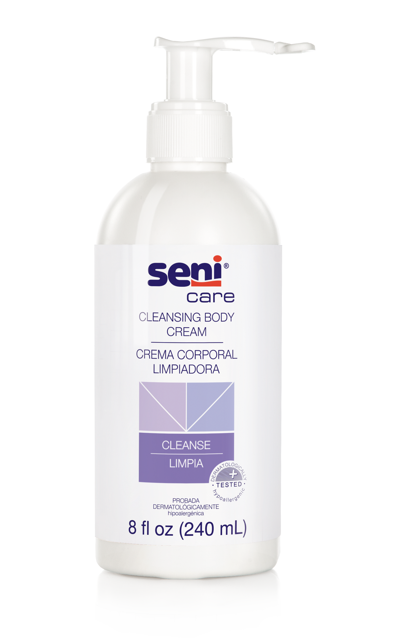 Seni care cleansing cream, 8 oz.Seni care cleansing body cream is a gentle cream for everyday cleansing of sensitive skin.Leaves the skin clean and odor free.Emollients to moisturize and soften the skin.Citronellyl methylcrotonate neutralizes urine odor.; no rinse formula.Recommended for use with personal care gloves.Directions for use: apply needed amount of seni care cleansing body cream to the glove or soiled areas, spread gently and wipe away residue with other side of glove after approximately 1 minute.Do not rinse, to leave a delicate film on the skin.Size 8 fl.Oz.