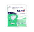 Seni super plus briefs large for heavy to severe incontinence and overnight protection are excellent and reliable protection for both active people and those with limited mobility.Fully breathable outer layer allows humidity to evaporate to promote a skin-friendly microclimate.;double absorbent core provides high absorbency and the feeling of dryness.; superabsorbent locks in moisture to prevent skin irritation.; locking urine inside the core also reduces bacterial growth and helps contain odor.; hydrophobic standing side gathers for better protection.; elastic leg cuffs ensure perfect fit.; elastic elements at the waist, front and back together with double elastic combi-tapes ensure a better adjustment of the briefs to the body.; extra dry system (eds) non-woven layer for quick and effective absorption.; double wetness indicator helps caregiver know when changing is necessary.; not made with natural rubber latex.Waist/hip size large 45"-59"