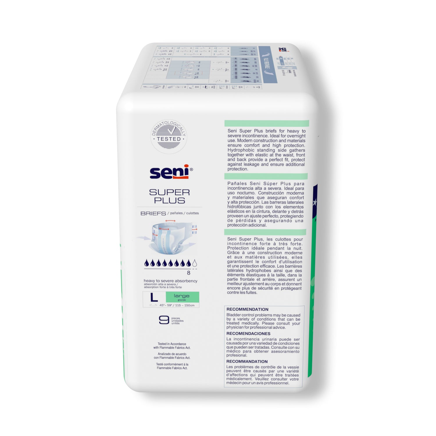 Seni Super Plus Briefs, Large, 9 Count - 45" - 59" - Pack(age) of 9