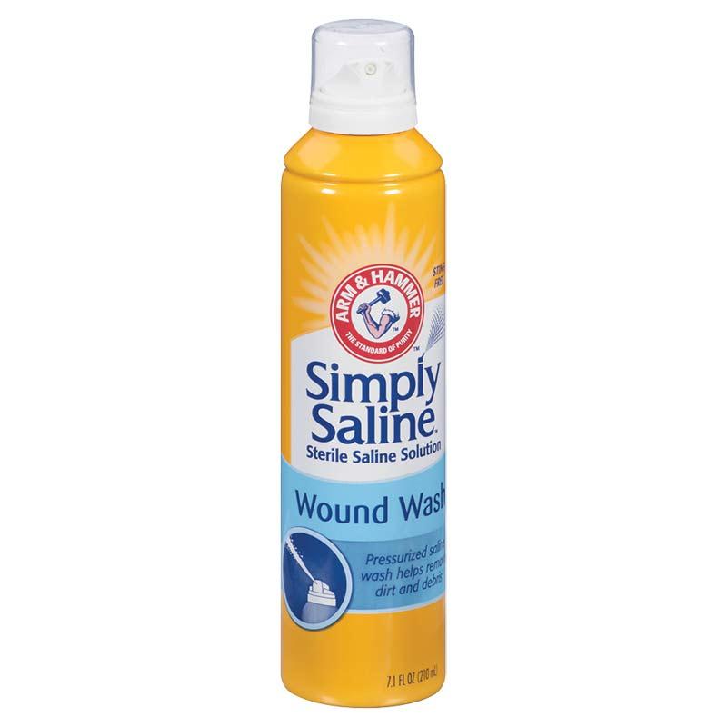 Simply saline 3 in 1 wound wash, 7.1 ounce.Cleans with pressurized saline spray.Helps prevent bacterial contamination or skin infection in: minor cuts, minor scrapes, minor burns.Allows body to heal naturally.Soothing aloe vera antibacterial formula with aloe vera.No burning or stinging.Preservative & drug-free.360 dispensing.