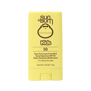 Sun bum kids face stick, spf 50.Our kids spf 50 clear sunscreen face stick glides on like a dream and fits easily into our pocket, bag or backpack so we can take it with us wherever we go.Formulated for wet & dry application and made to keep up with our most active kids.Broad spectrum protection, cruelty free, vegan, paraben free, gluten free, water resistant (80 minutes), hawaii act 104 reef compliant, oxybenzone & octinoxate free.