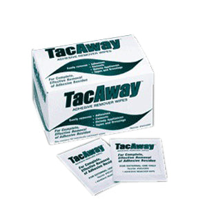 Tac-away adhesive remover wipe, non-acetone.Sold 50 per box.