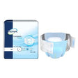 Tena complete +care brief, large 40" - 56" (102 - 142 cm) hip size, blue, extra absorbency, duolock, ezfasten, bodyfit, wetness indicator.