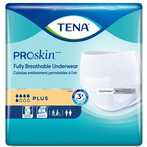 Tena proskin plus protective underwear with confioair breathable technology and a fast-acting core helps wick away moisture from the skins surface.A fully breathable product intended for mobile and semi-mobile individuals that supports self-toileting and is easy to put on and pull off just like real underwear.The soft material stretches to fit the contours of the body for a secure and comfortable fit.
