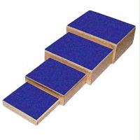 Therapy steps.Ideal for balance retraining.Top covered with foot friendly carpet.Steps come in a set of four, with heights at 2", 4", 6" and 8" and can be nested when not in use.Weight capacity 400 lbs.